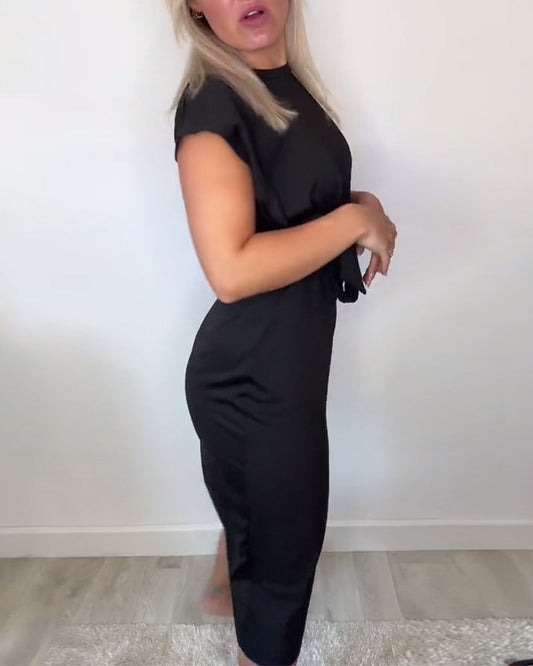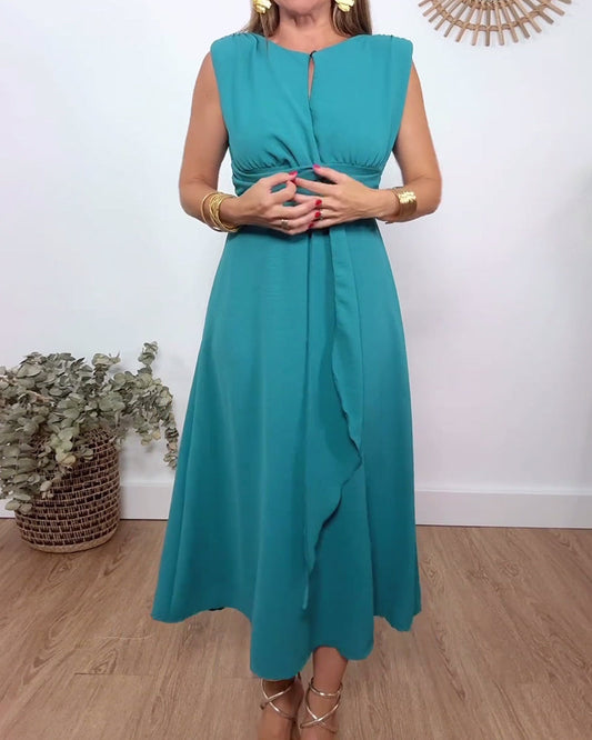 Vestido con abertura y cordones sin mangas de color sólido de moda