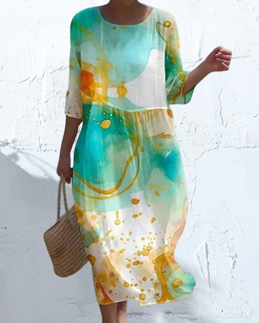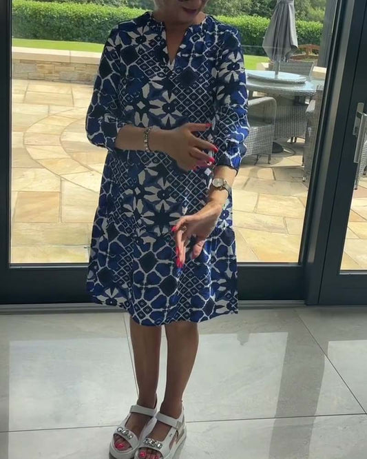 Vestido con solapas y mangas raglán con estampado tie-dye