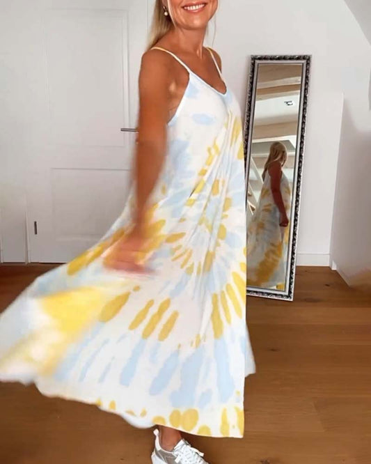Vestido sin espalda con tiras y cuello halter con estampado de vacaciones