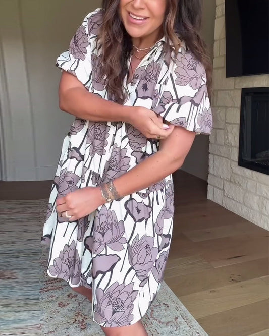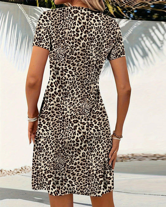 V-Neck Printed Slit Casual Short-Sleeved Dress