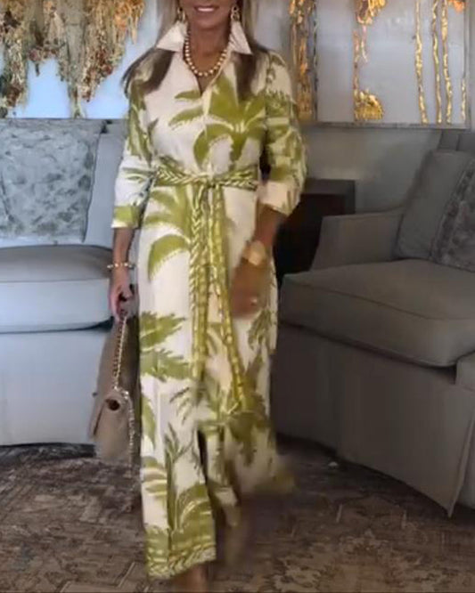 V-Neck Printed Short-Sleeved Straight Maxi Dress