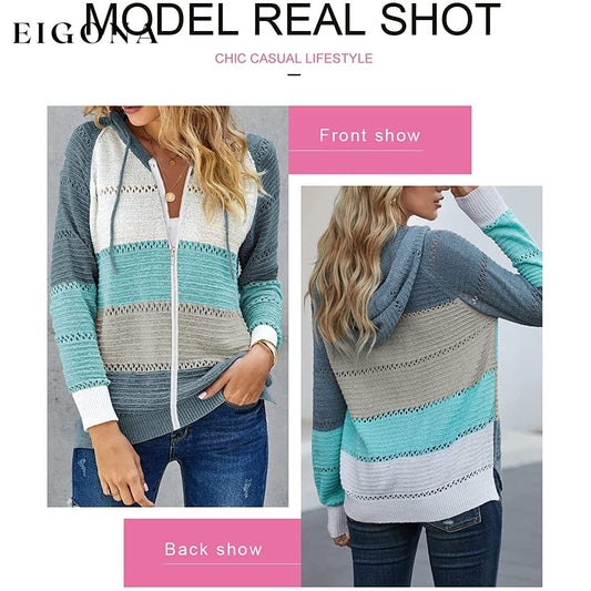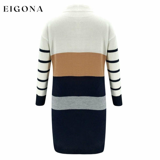 Vestido tipo suéter a rayas con cuello alto y capucha de punto para mujer Mini vestido tipo jersey de manga larga