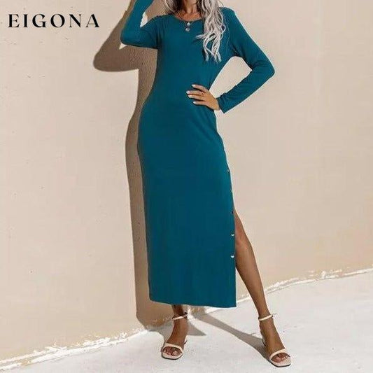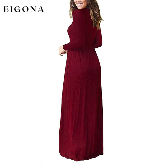Vestidos largos informales sueltos y lisos de manga larga para mujer con bolsillos
