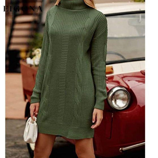 Jersey de cuello alto Suéteres Casual Manga larga Vestido de suéter de punto de invierno liso