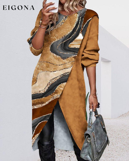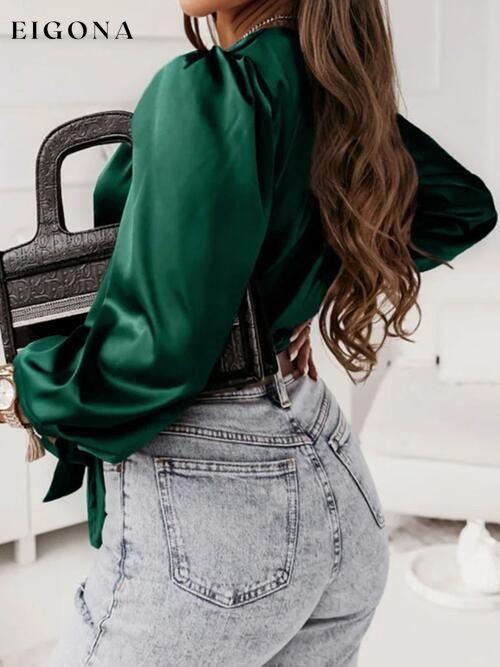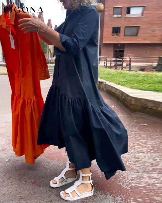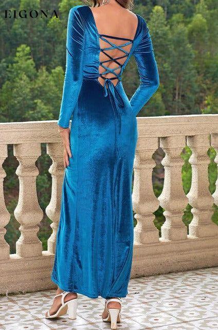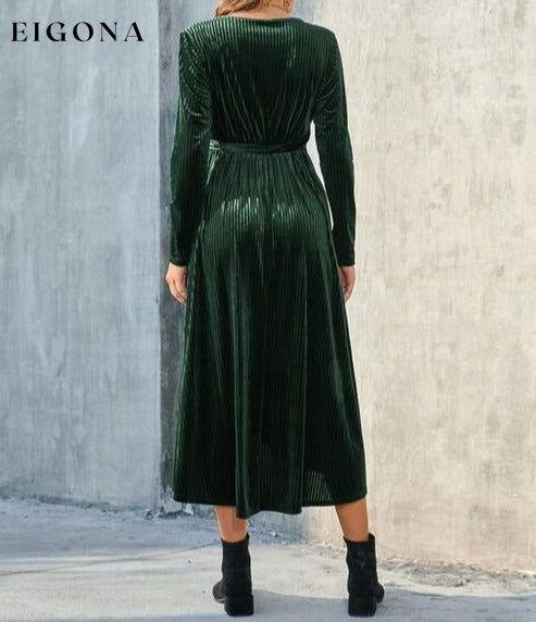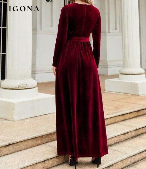 Vestido largo de manga larga con cuello redondo y lazo en la parte delantera