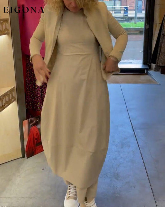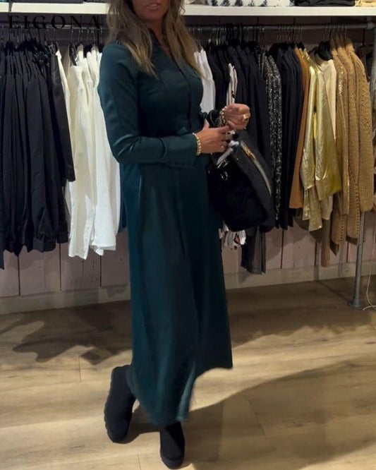 Vestido casual de manga larga de color sólido