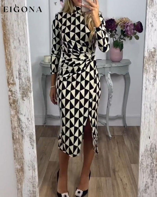 Vestido ajustado con estampado geométrico de manga larga