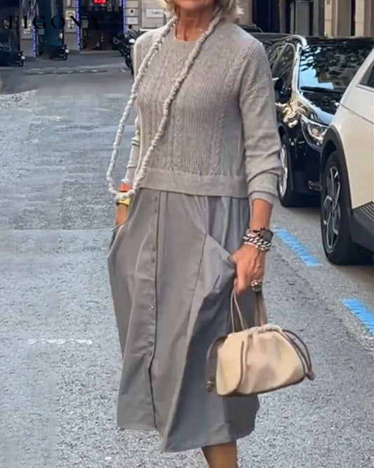 Vestido casual de manga larga con retazos