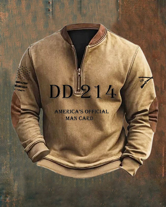 Men's Retro DD-214 Veteran Zip Collar Sweatshirt