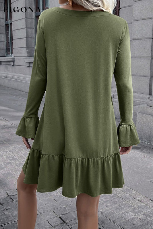 Minivestido con cuello en V, manga con volante y dobladillo con volantes