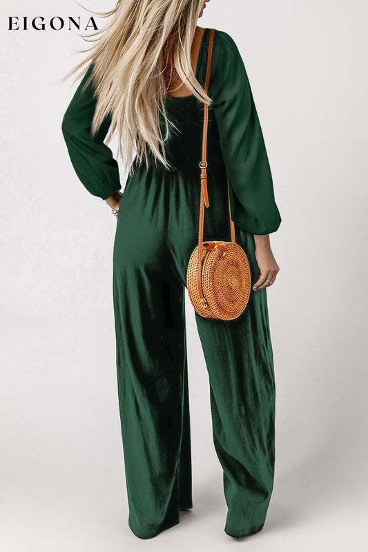 Mono con pernera ancha y manga larga con cuello cuadrado fruncido verde