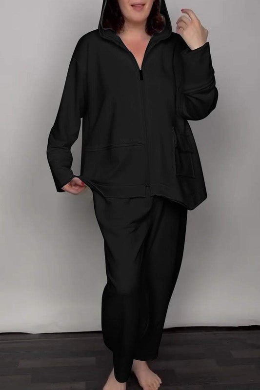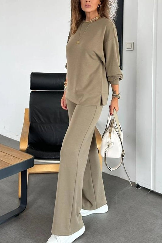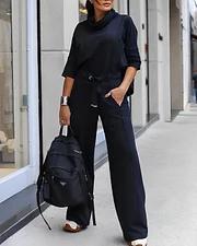 Women's Solid Color Casual Suit Top & Pants Two-piece Set