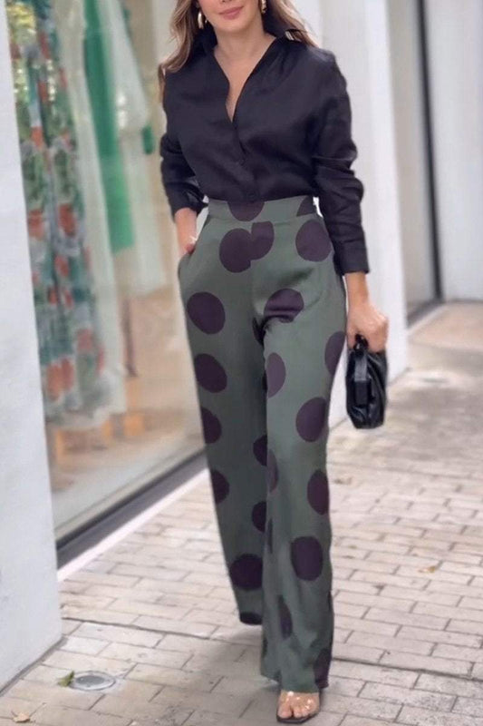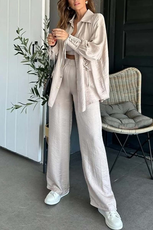 Women's Spring and Fall Solid Color Shirt and Pants Suit
