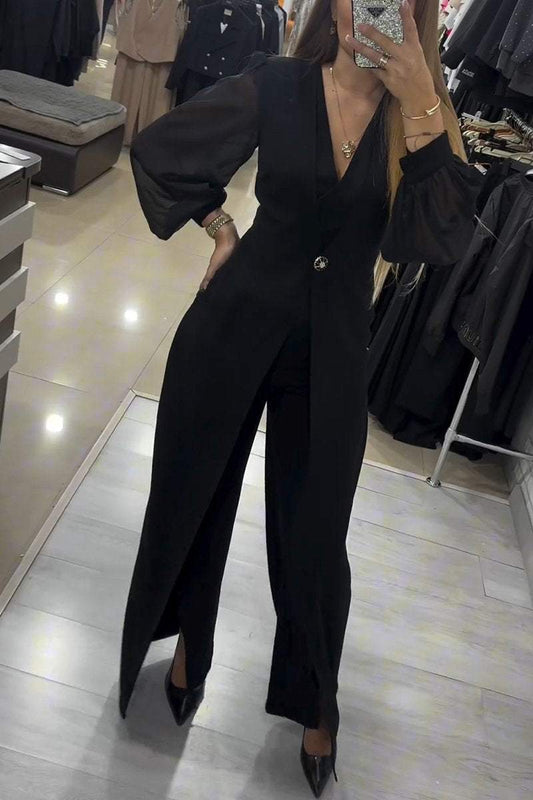 Women's V-neck Long-sleeved Suit Casual Jumpsuit