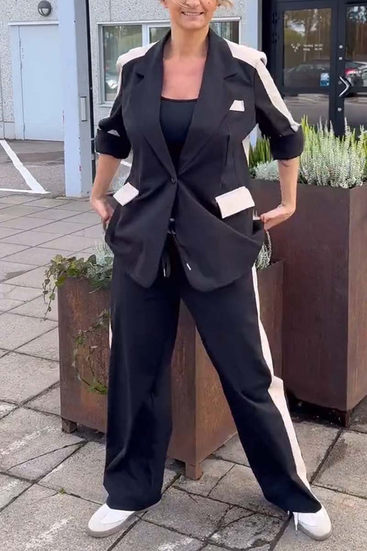 Women's Spring and Fall Casual Solid Color Lapel Suit