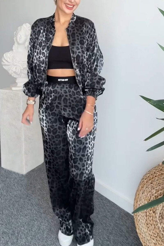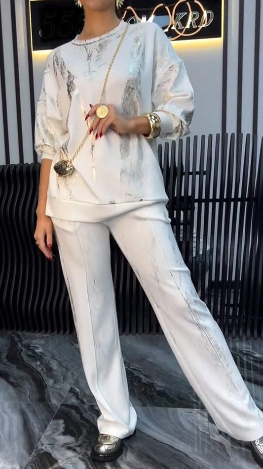 Women's Round Neck Long Sleeve Silver Hot Casual Suit