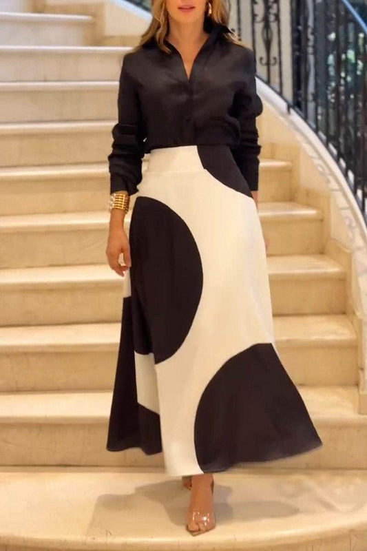 Women's Spring and Fall Solid Color Shirt Skirt Set