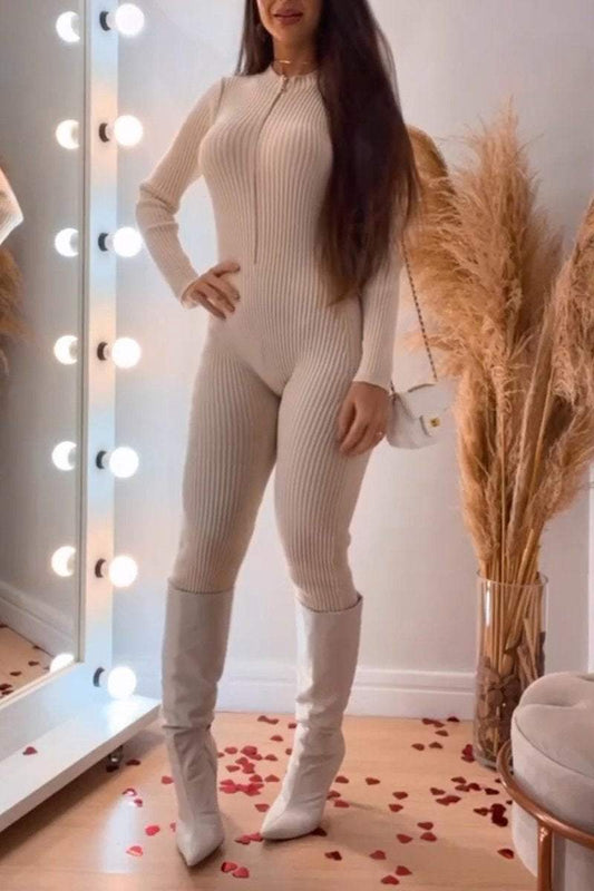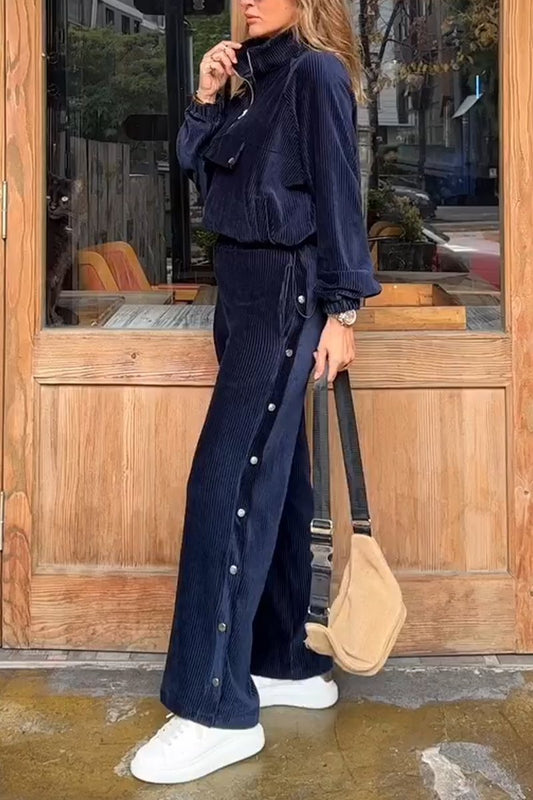 Women's Fine Knit High Neck Zip Jumper Top & Trouser Co-Ord