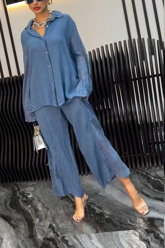 Women's Lapel Long Sleeve Lace Stitching Cotton and Linen Suit