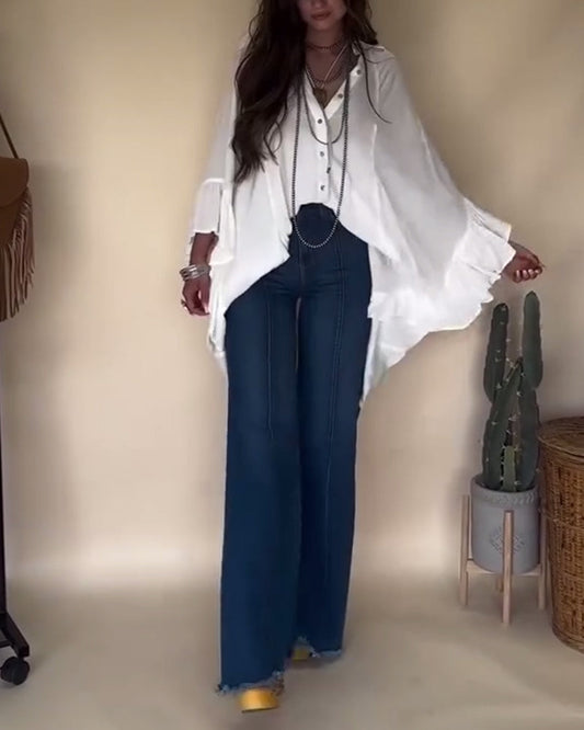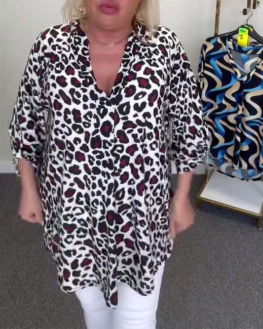 Blusa casual de manga larga con cuello en V y estampado de colores en contraste