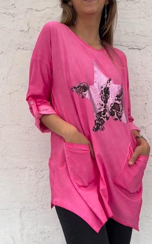 Top estampado de estrella de cinco puntas con cuello redondo para mujer