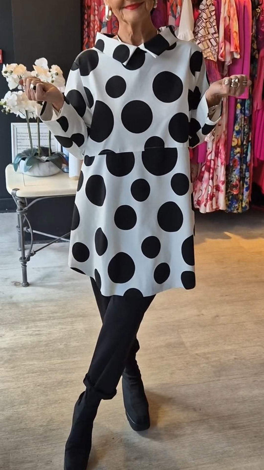 Top de manga larga con solapa y estampado de lunares para mujer