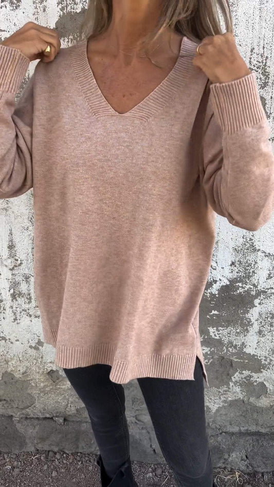 Top casual de punto de manga larga con cuello en V