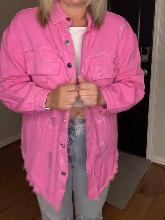 Chaqueta estilo camisa con botones Base y detalles rasgados de mujer de color rosa