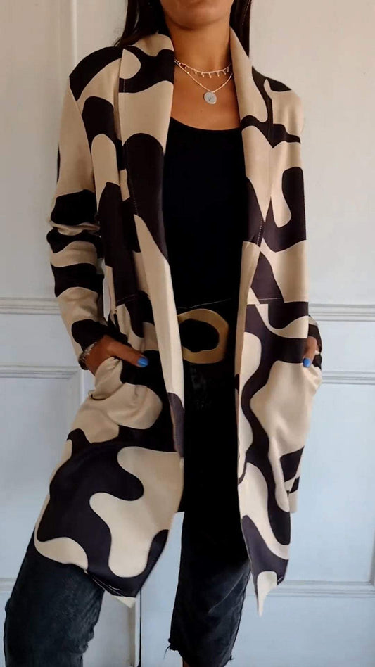 Cárdigan con solapa larga y estampado en contraste