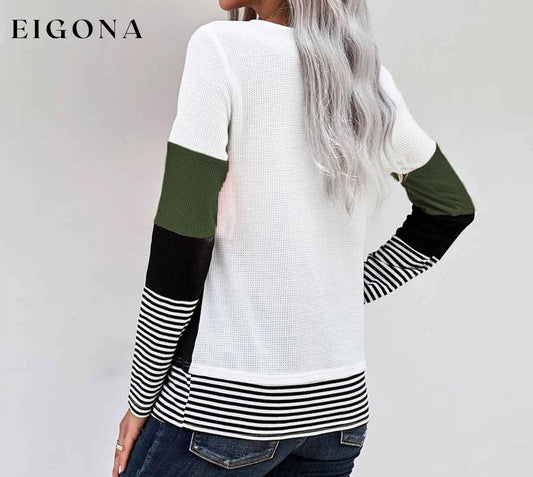 Camiseta con panel de rayas y punto tipo waffle con bloques de color