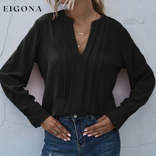 Blusa de talla grande con cuello en V y cremallera de manga larga para mujer