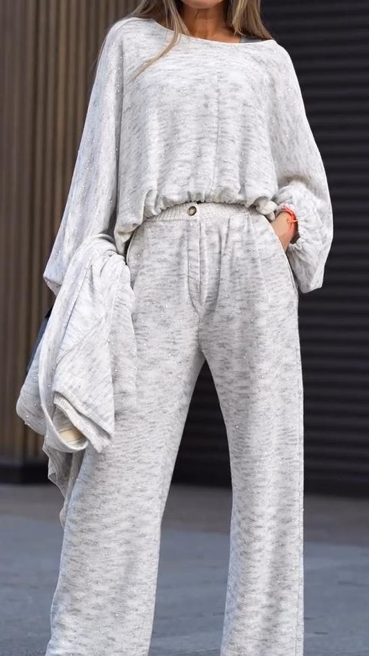 Costume pantalon décontracté ample et étincelant pour femme
