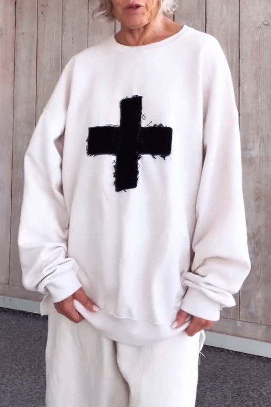 Sweat-shirt ample décontracté à col rond pour femme