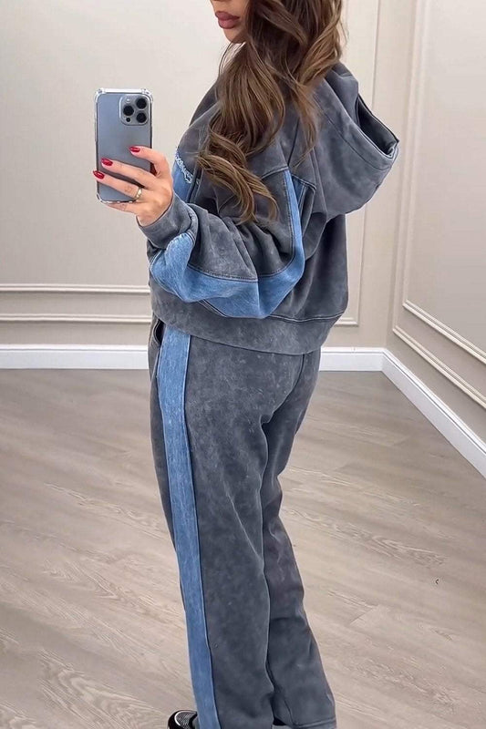 Ensemble deux pièces Cardigan en Denim Patchwork tricoté pour femmes, haut et pantalon