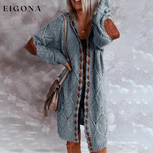 Pull cardigan à capuche en tricot color block pour femme