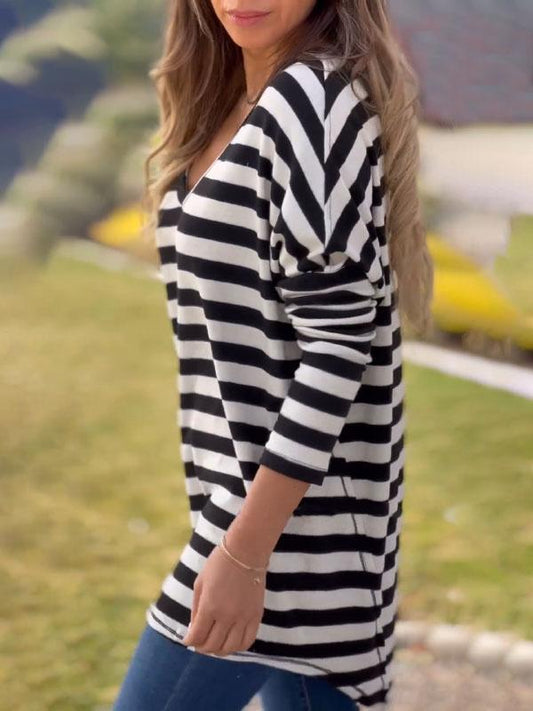 Sweat à capuche imprimé rayé à manches longues avec cordon de serrage pour femme