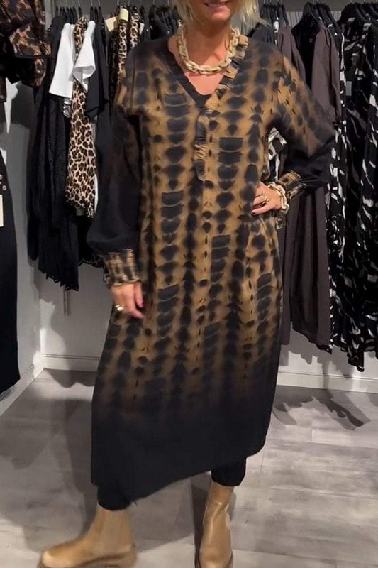 Women's Spring/fall Leopard Print V-neck Loose Casual Dress