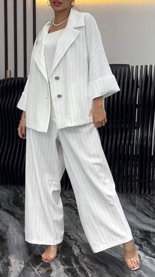 Women's Striped Long-sleeved Blazer Two-piece Suit