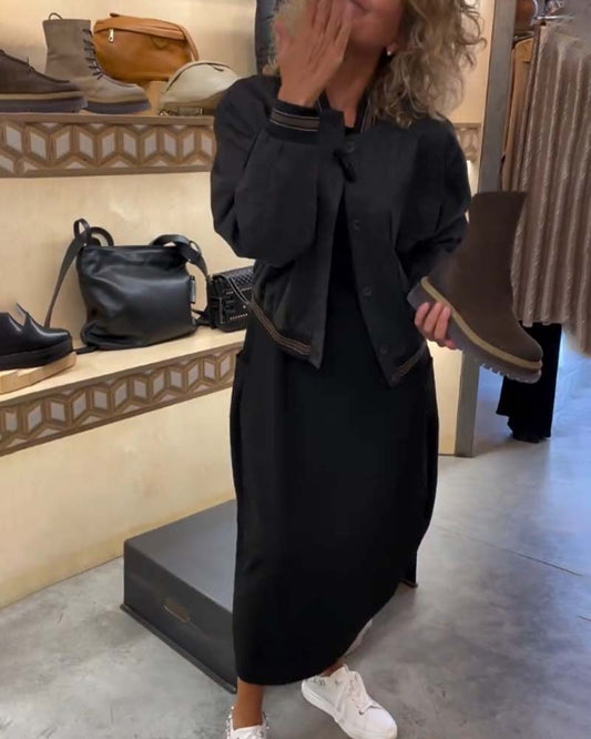 Robe décontractée à boutons et revers à sequins de couleur unie
