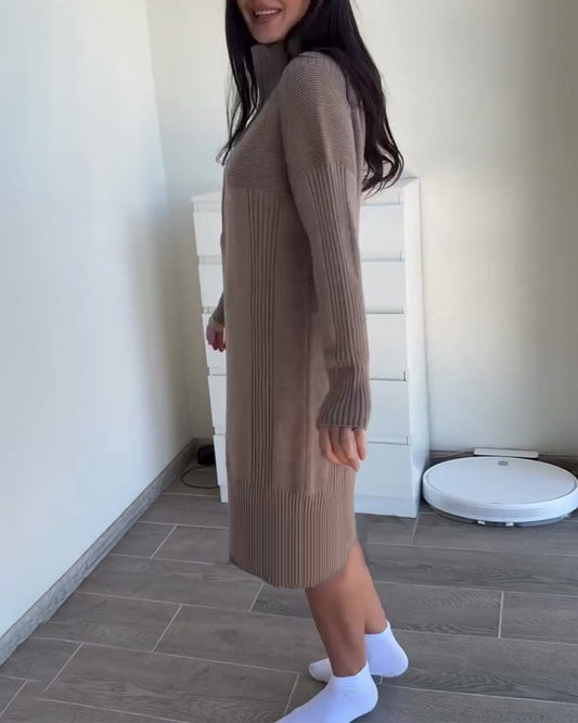Casual solid color stand collar zipper sweater dress