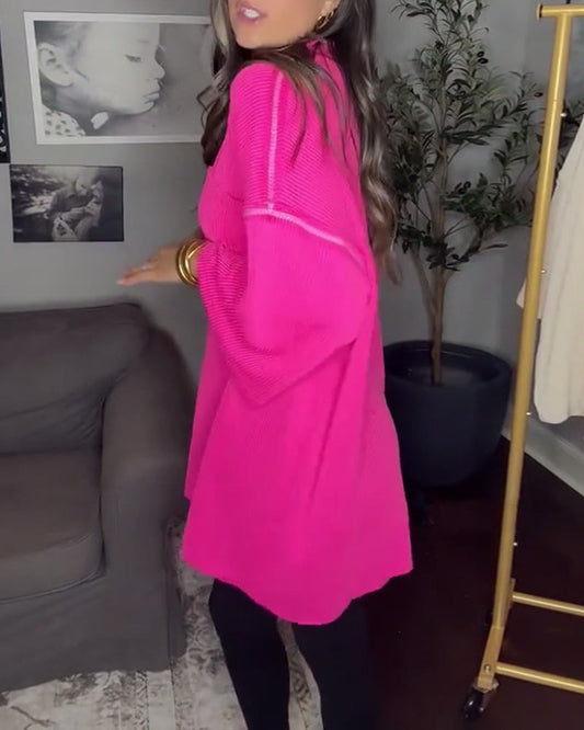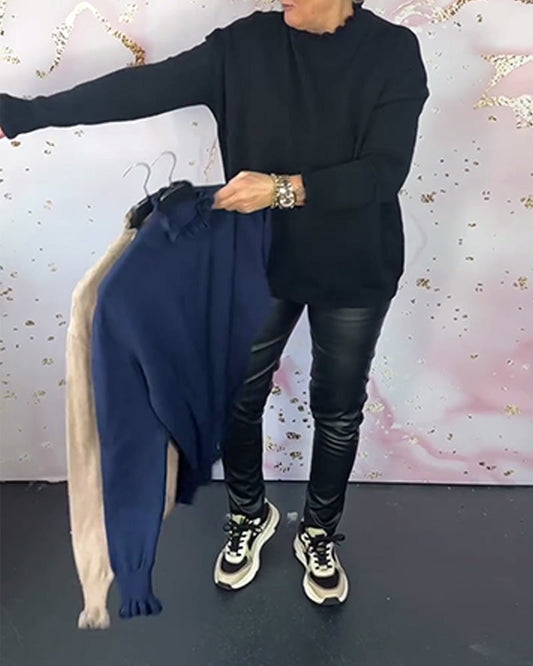Casual solid color ruffled sweater