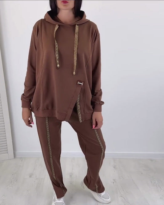 Ensemble décontracté à capuche fendu de couleur unie