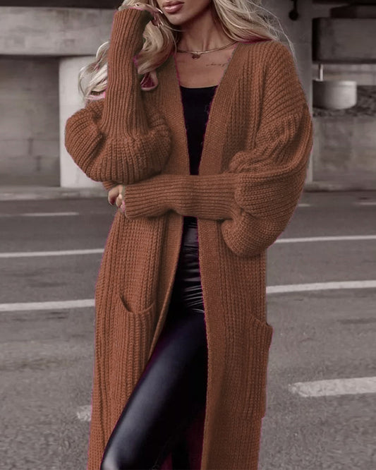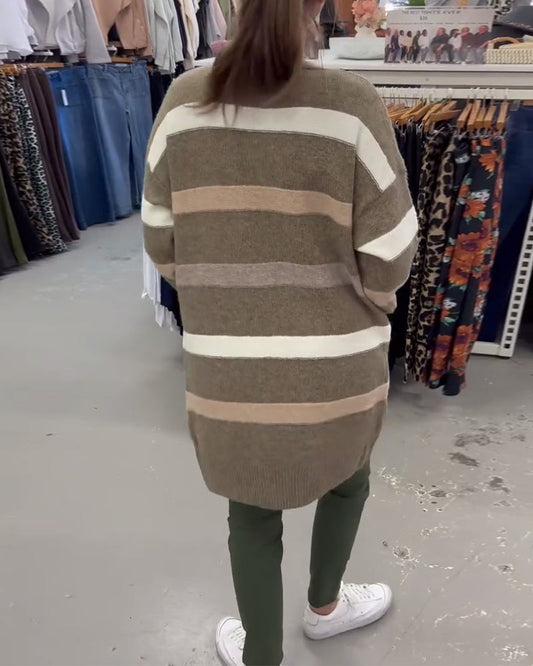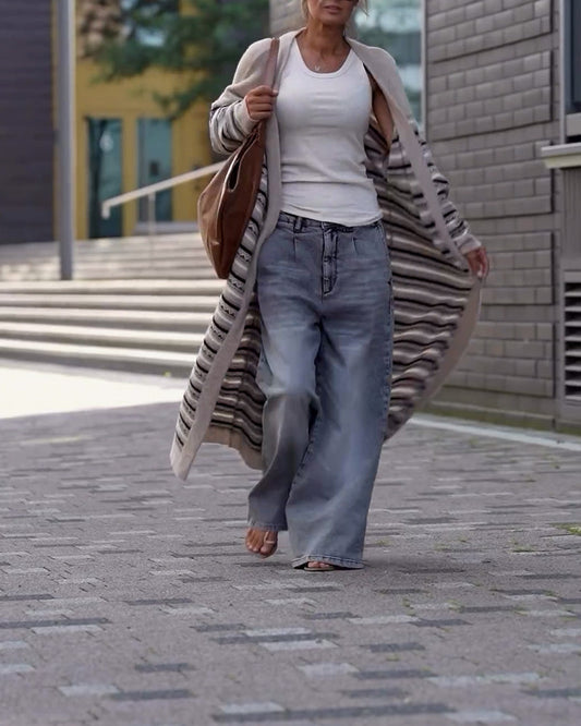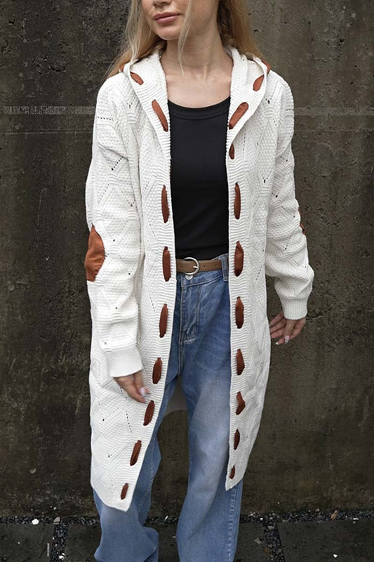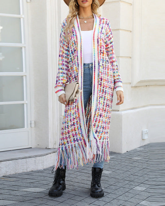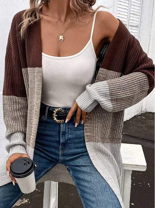 Cardigan tricoté mi-long décontracté de couleur contrastée pour femme