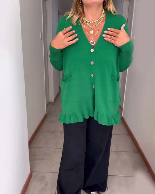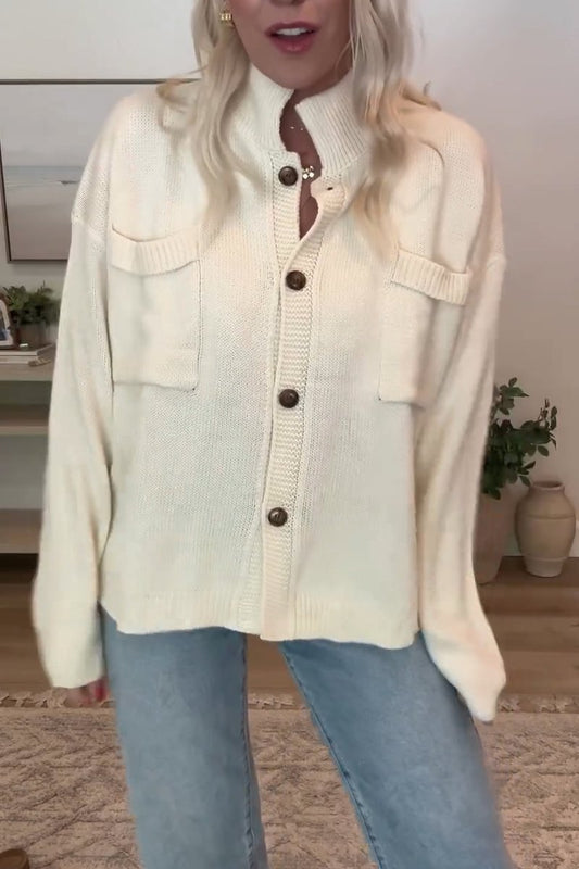 Women's Super Soft Chunky Knit Gold Button Cardigan