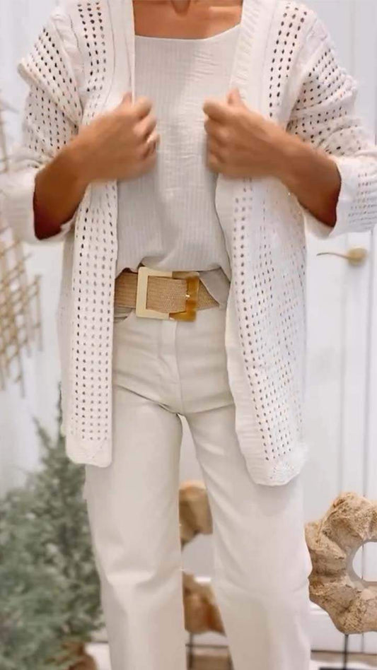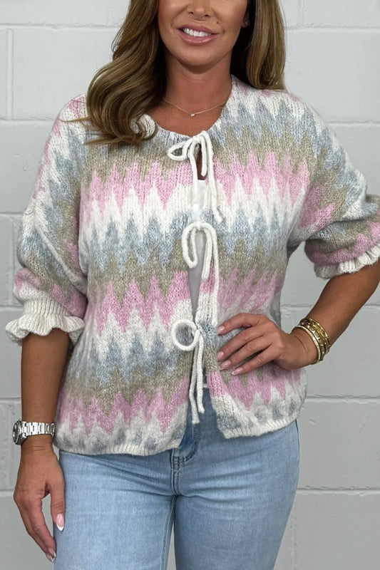 Cardigan décontracté à manches longues à lacets de couleur unie