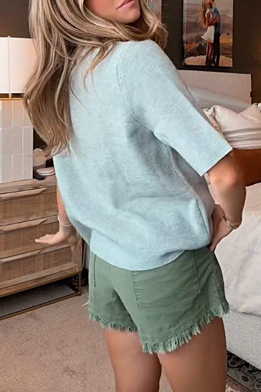 Women's Ribbed Pearl Trimmed Knit Gold Button Cardigan