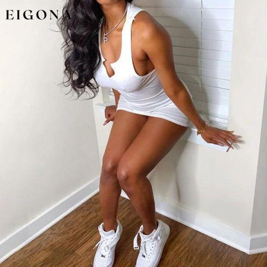 Robe de couleur unie sans manches à simple boutonnage et col rond