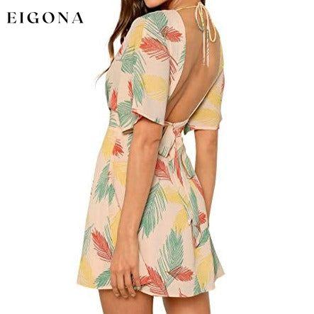 Robe courte ligne A à petites fleurs pour femmes, col plongeant, nœud sur le devant
