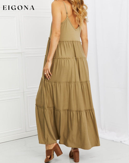 Robe étagée à bretelles fines pleine taille avec poches en kaki