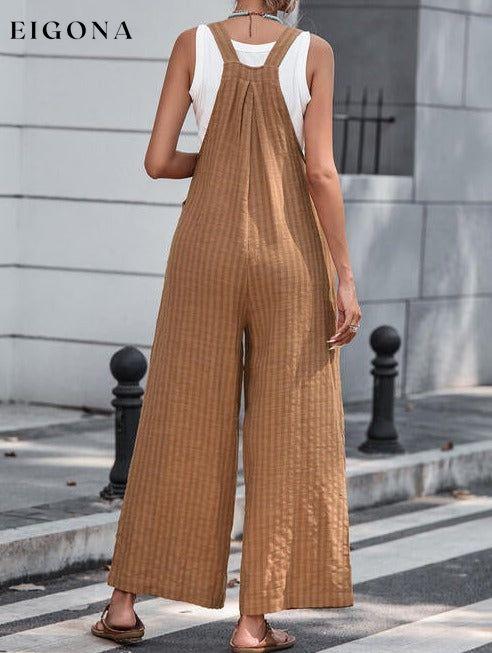 Chicorée Café Rayé Plissé Jambe Large Poche Combinaison